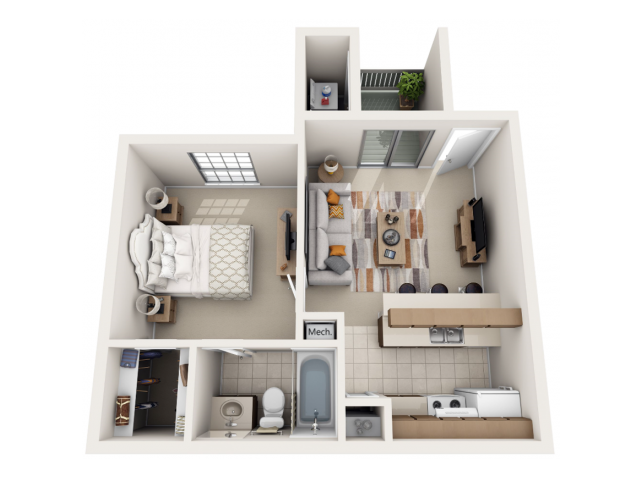 1 Bed, 1 Bath, 540 sq ftModel Gallery