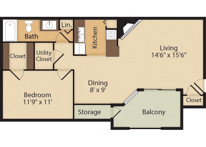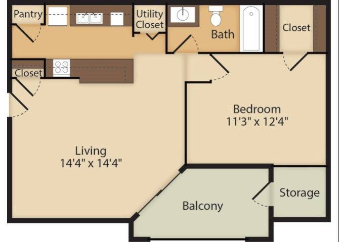 1 Bed, 1 Bath, 701 sq ftAvailable NowModel Gallery
