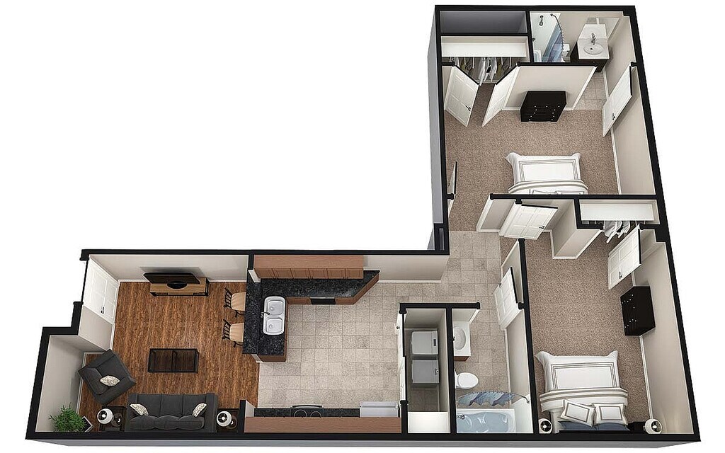 2 Beds, 2 Baths, 1000 sq ftAvailable August 7, 2026Model Gallery