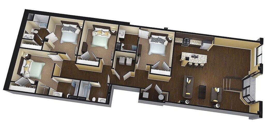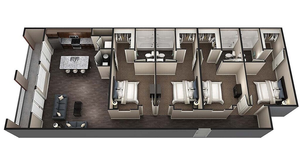 Brookside Downtown is the premiere property for students wanting to walk to campus. Located in the heart of Downtown, Brookside offers the convenience of being adjacent to campus and the surrounding downtown businesses. There are a wide variety of apartment styles all designed to provide more space than other student housing complexes. The property features resort-style amenities like the rooftop pool/bar, state of the art fitness center and student success center. Brookside Downtown is the place to be to maximize your lifestyle as a student!