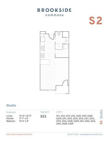 Apartment Model: S2Studio, 1 Bath, 553 sq ftUnavailable![]()