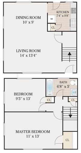 Apartment Model: 2 Bedroom 1 Bathroom TownhouseCall For Rates2 Bedroom, 1 Bath, 850-980 sq ftUnavailable![]()