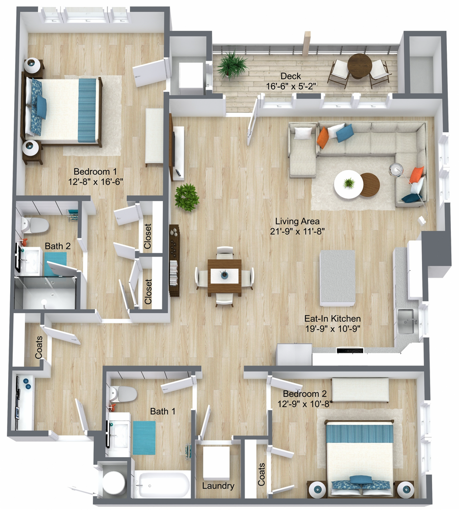 2 Beds, 2 Baths, 1340 sq ftTotal Monthly PriceAvailable NowModel Gallery