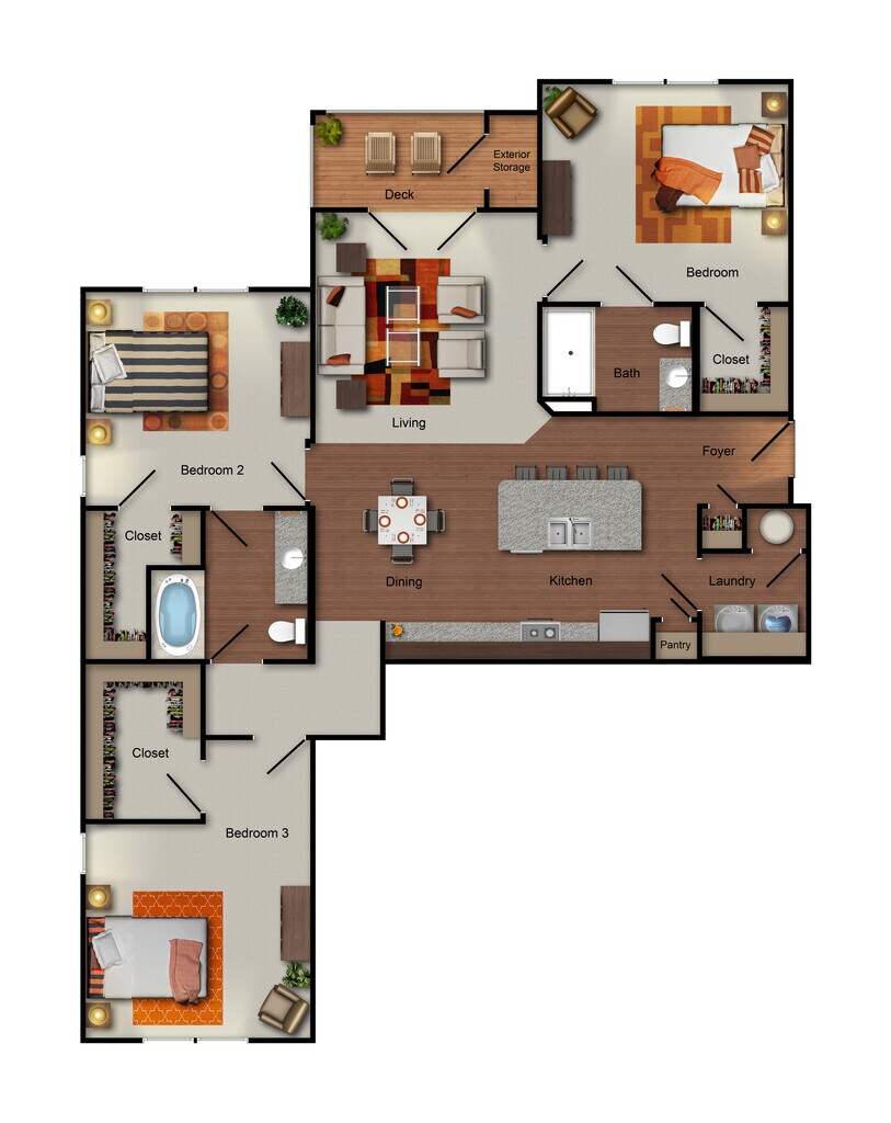 1 Bed, 1 Bath, 828 sq ftAvailable NowLargest 1 BedroomThis is the largest 1 Bedroom at this PropertyModel Gallery