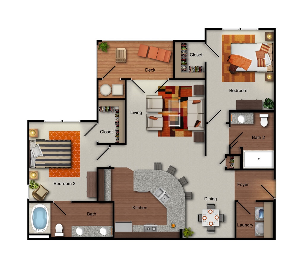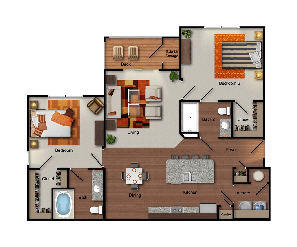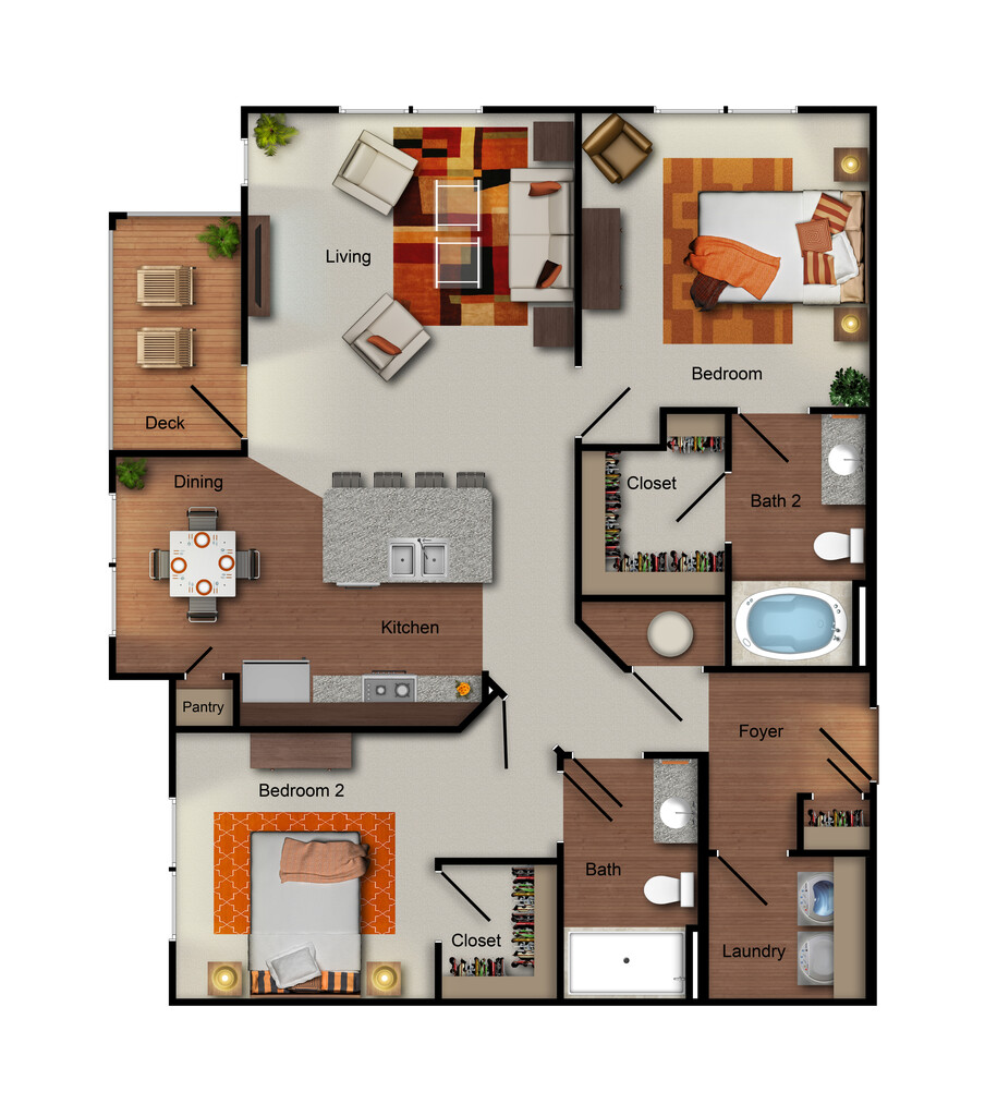2 Beds, 2 Baths, 1038 sq ftAvailable NowModel Gallery