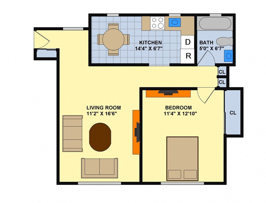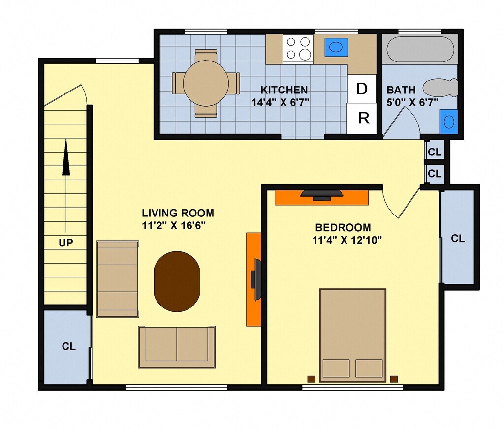 One Bedroom (Downstairs) - Floorplan 1 Apartment Unit: 13AApartment Model: One Bedroom (Downstairs)$2,1211 Bedroom, 1 Bath, 522 sq ftAvailable NowOne Bedroom (Upstairs)