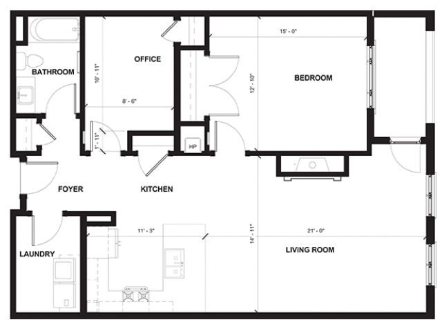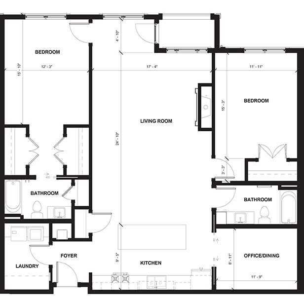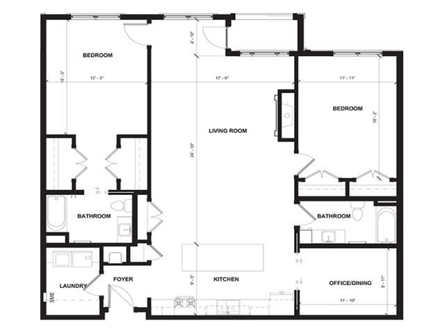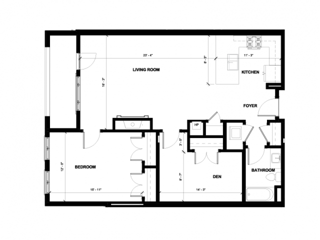 One Bedroom w/Den - Floorplan 3 Apartment Unit: 112Apartment Model: One Bedroom w/Den$2,0851 Bedroom, 1 Bath, 1026 sq ftAvailable Now![]()