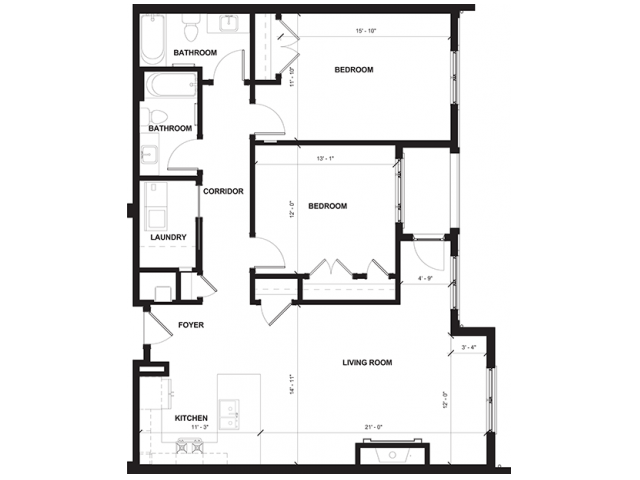 One Bedroom - Floorplan 10 2 Bedrooms