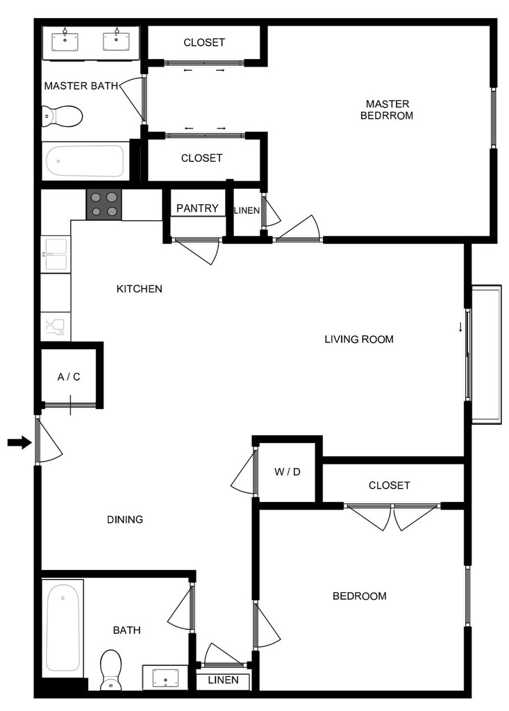 1 Bedroom - Floorplan 1 2 Bedrooms
