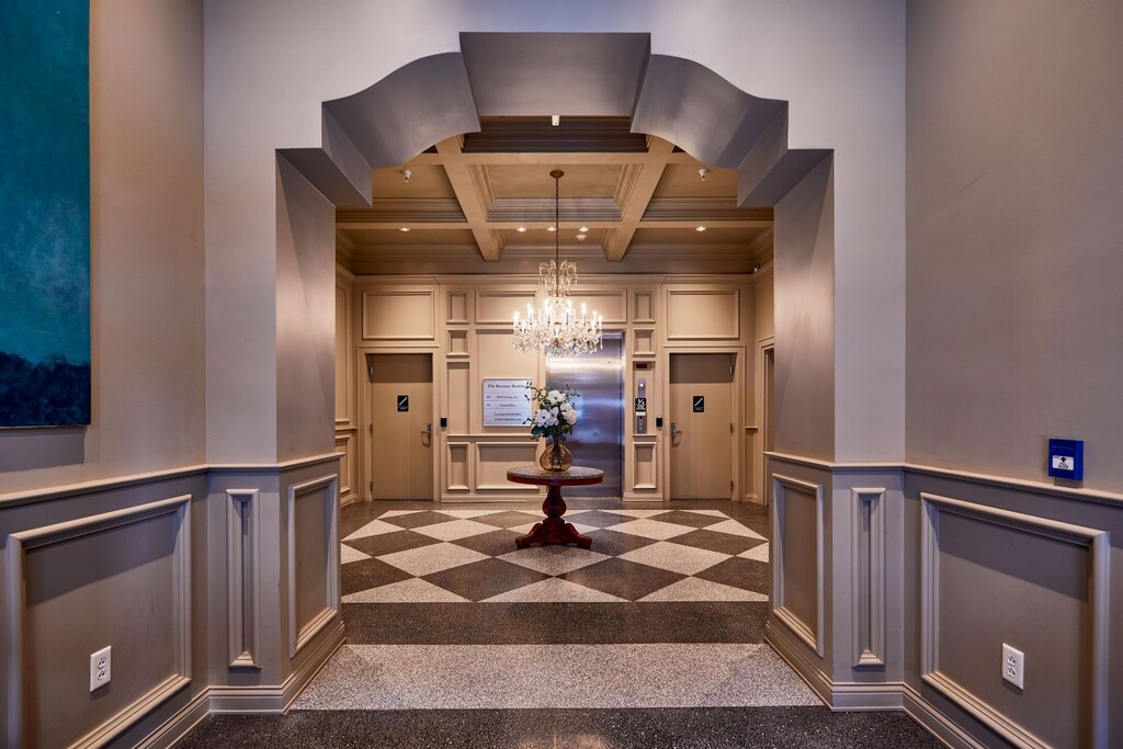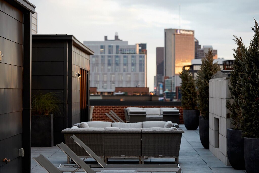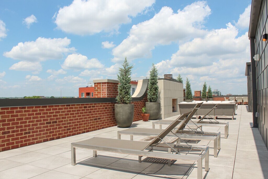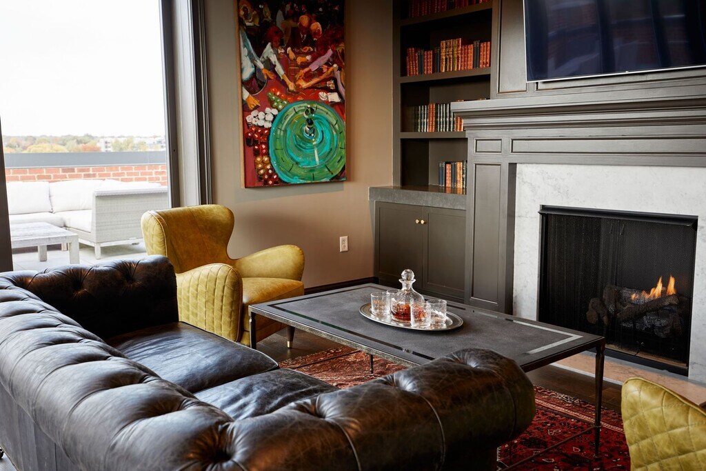 The Brunner Building has a historic design, modern apartment finishes, and expansive amenity spaces, that allow residents to experience the finest in urban living. Our luxury kitchen finishes have quartz countertops, marble backsplashes, a five-burner gas range stove imported from Italy, stainless steel appliances, deep-basin sinks with garbage disposal, soft-close dovetailed wood cabinetry, and more! The Brunner Building also features real hardwood floors, custom-built gas fireplaces, large windows, high ceilings, and custom-built walk-in closets with wood shelving in each apartment. Take in all the Short North has to offer from the 120-foot rooftop terrace with a built-in rooftop grill, gas fireplaces, lounge chairs, flat-screen TVs, and a refined bar area.