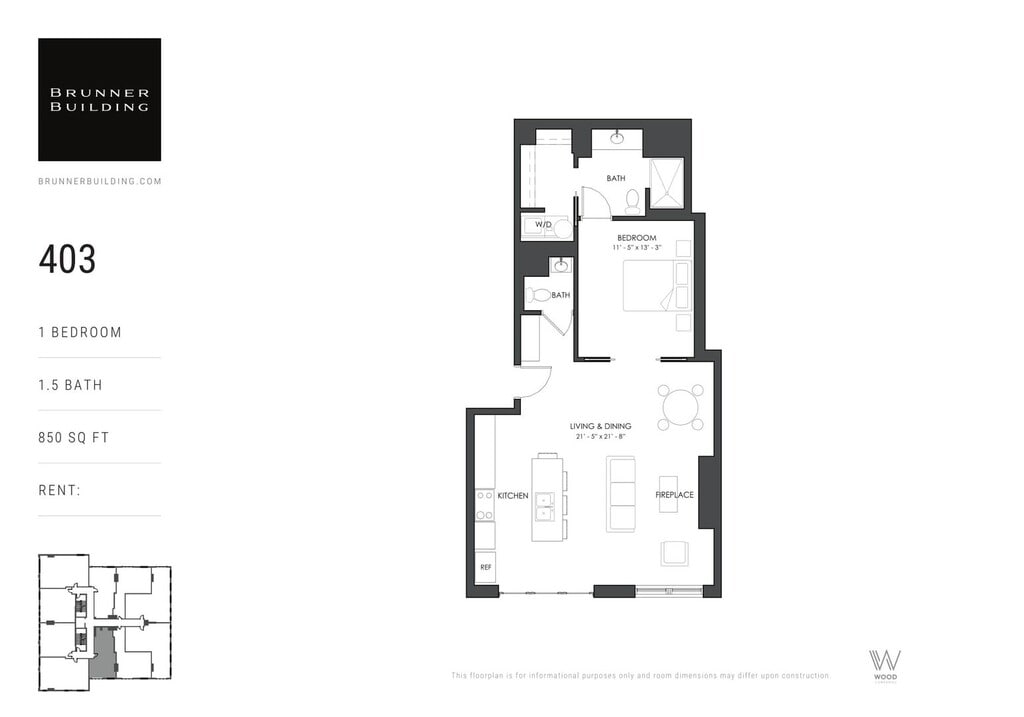 1 bedroom/1.5 bath - Brunner 403 - Floorplan 1 Apartment Unit: 403Apartment Model: 1 bedroom/1.5 bath - Brunner 403$1,8951 Bedroom, 1.5 Bath, 876 sq ftAvailable Now![]()