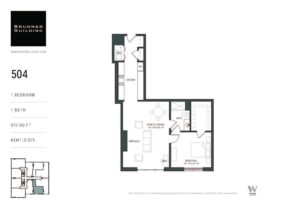1 bedroom/1 bath - Brunner 504 - Floorplan 1 Apartment Unit: 504Apartment Model: 1 bedroom/1 bath - Brunner 504$1,8951 Bedroom, 1 Bath, 913 sq ftAvailable Now![]()