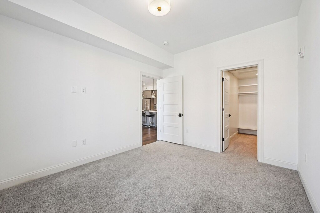 Welcome to The Brunner - Residence 504. This 1 bedroom, 1 bathroom features a custom built-in fireplace, galley kitchen, large windows, and high ceilings. The gourmet kitchen includes a 36 inch gas range, quartz countertops, custom cabinetry, and ample counter tops. The bedroom has a large walk-in closet with custom built-in shelves. The bathroom comes complete with backlit mirrors, tiled showers, and quartz countertop. A full-size in-unit washer/ dryer and attached garage available for residents convenience.
