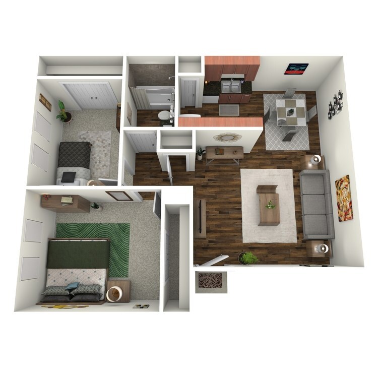 Apartment Model: The Elm$1,6392 Bedroom, 1 Bath, 980 sq ftAvailable NowThe Elm - Floorplan 1 The Oak