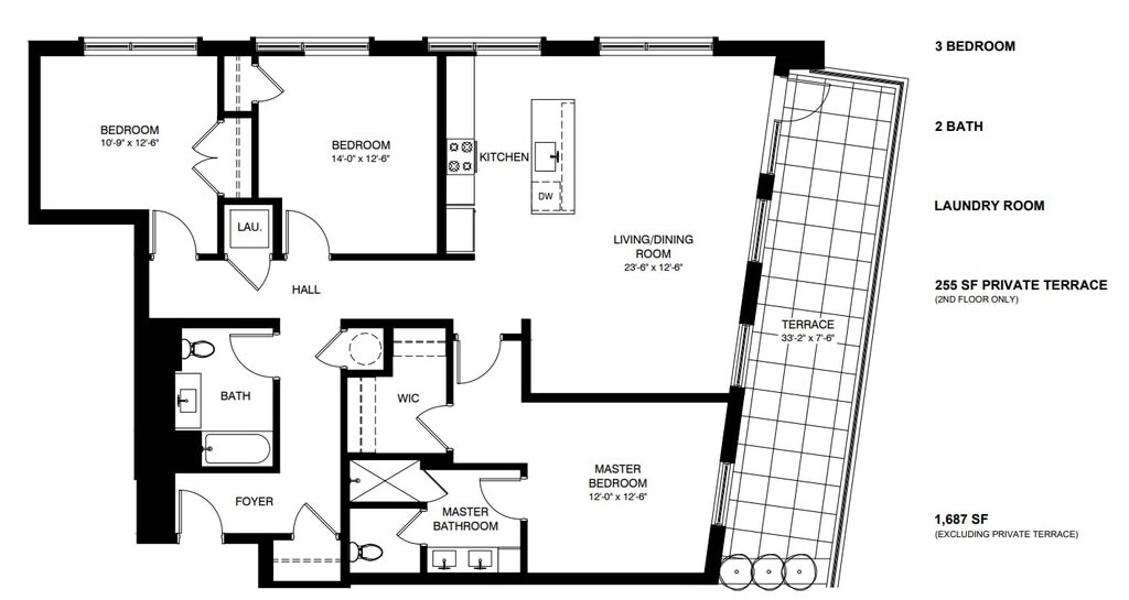 LUXURY NEW DEVELOPMENT. Beautiful apt with large outdoor terrace. Bedroom suite with walk-in closet and bathroom. Oversized windows, large living/dining room, eat-in kitchen, 2nd full bathroom and 2nd walk-in closet. In-unit washer-dryer and thermostat. Resident super. Pets allowed. Keyless entry to furnished lobby with Amazon package room, and easy access tenant's lounge, gym, business center. Interior pictures for illustrative purposes only.