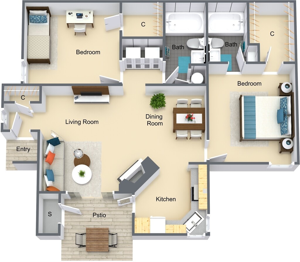 2 Beds, 2 Baths, 940 sq ftAvailable NowModel Gallery
