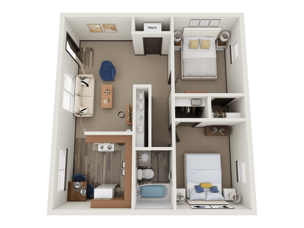 2 Beds, 1 Bath, 880 sq ftAvailable NowModel Gallery