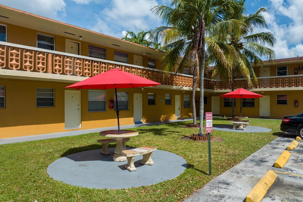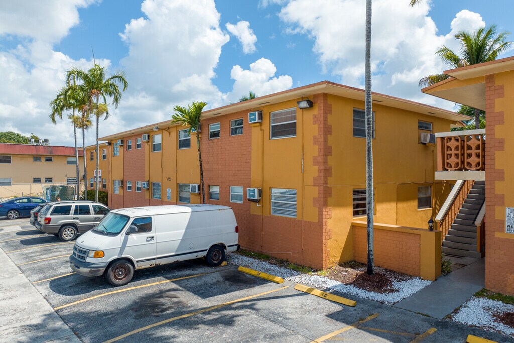 Our building is located in a quiet Hialeah Neighborhood within walking distance of Daycares, Supermarkets, restaurants, and financial institutions. Palmetto Express Way and Gratigny Parkway are 5 minutes away, and I-75 is 8 minutes away. All our units have wall A/C units, tile floors, and window coverings. There is one assigned parking space per apartment with one bedroom and two in apartments with two bedrooms.