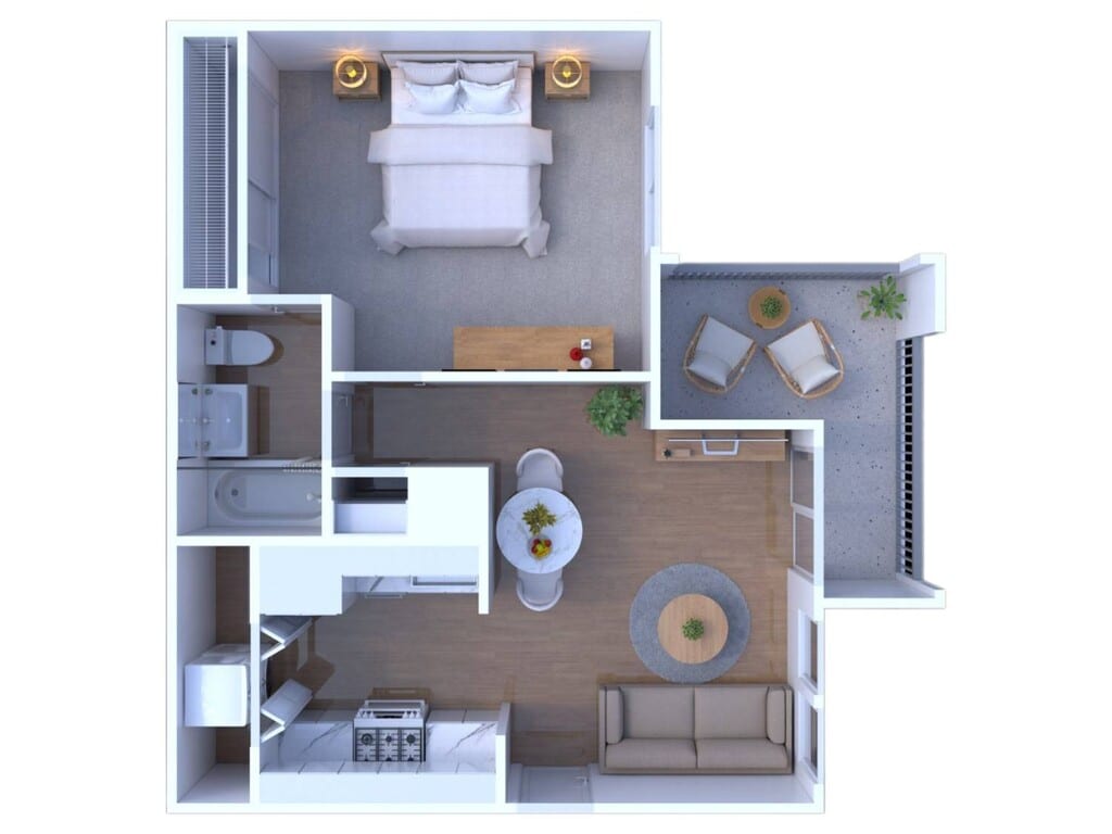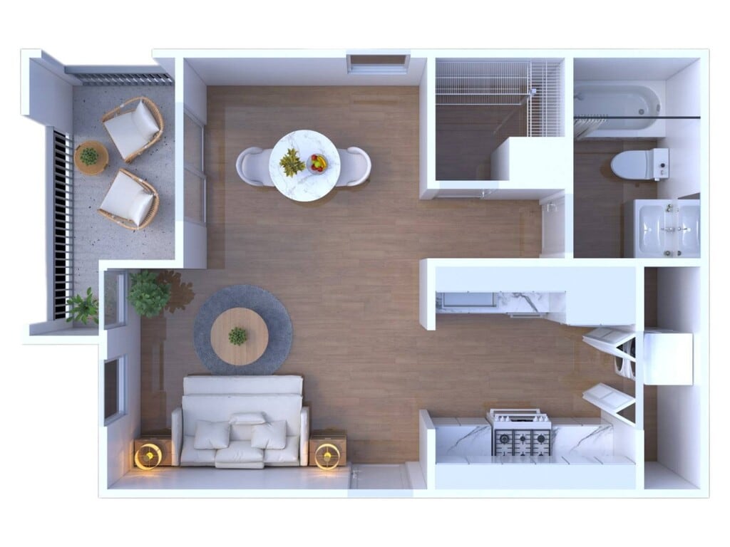 Apartment Model: Studio$1,056Studio, 1 Bath, 450 sq ftAvailable February 15, 2026Floor plans are artist's rendering. All dimensions are approximate. Actual product and specifications may vary in dimension or detail. Not all features are available in every rental home. Please see a representative for details.