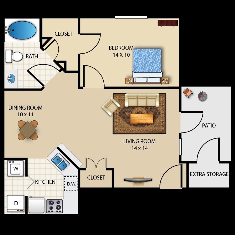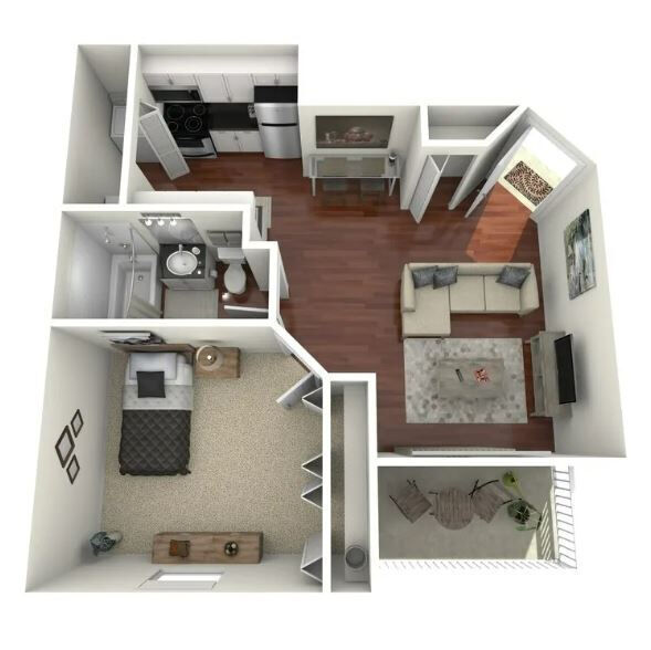 1 Bed, 1 Bath, 512 sq ftModel Gallery