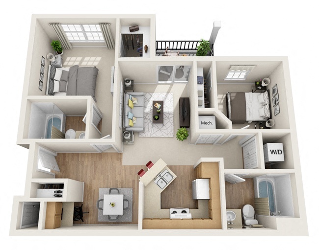 2 Beds, 2 Baths, 1036 sq ftModel Gallery