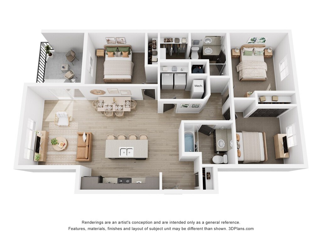 Apartment Model: 3 Bedroom 2 BathroomFrom $1,7953 Bedroom, 2 Bath, 1125-1219 sq ftAvailable December 1, 2025![]()