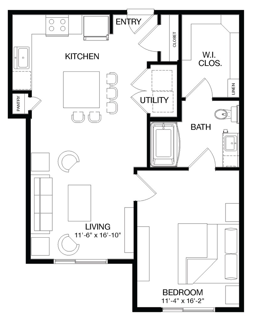 Studio, 1 Bath, 615 sq ftModel Gallery