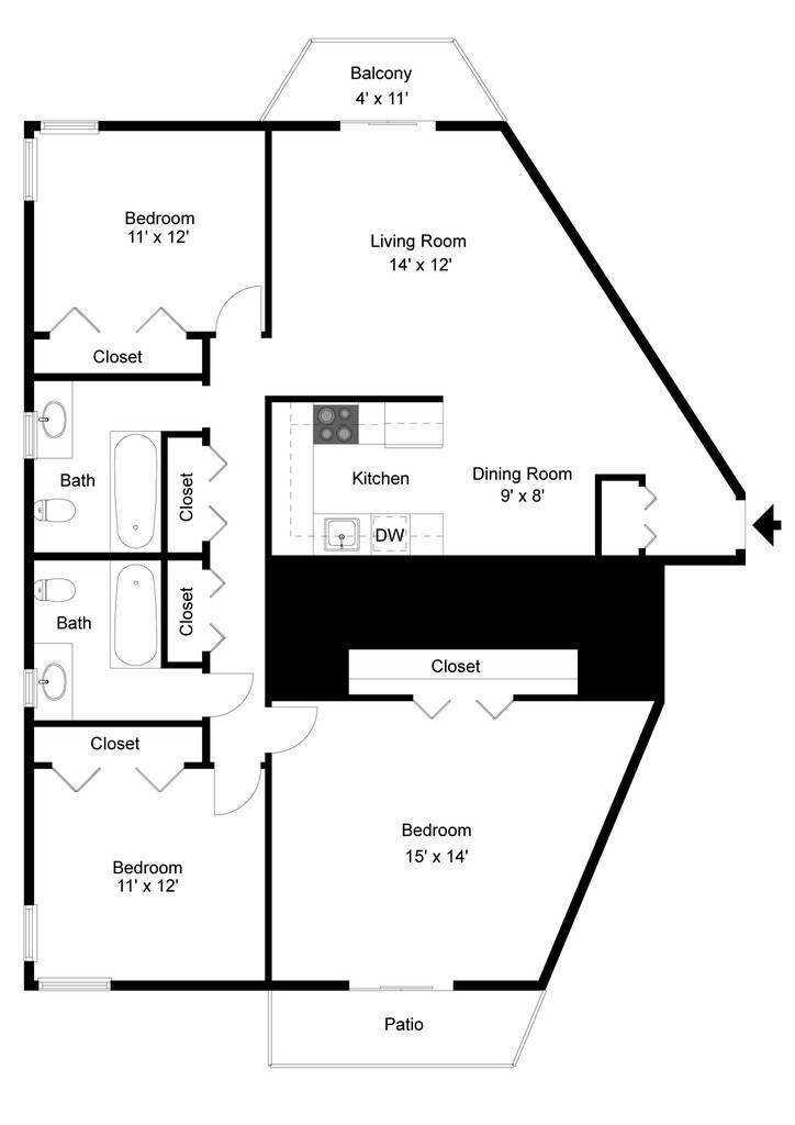 Apartment Model: 33 Bedroom, 1 Bath, 1400 sq ftUnavailable![]()