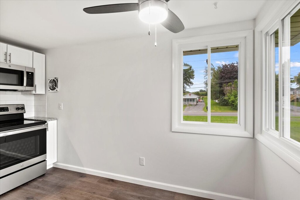 Enjoy what the town of Spencerport has to offer by calling Burke Crest your new home! This 1.5 bedroom apartment has been COMPLETELY renovated from head to toe. The apartment has been updated with brand new LifeProof flooring, granite countertops, stunning new kitchen cabinets and appliances, and a completely remodeled bathroom with marble tiling. This 1.5 bedroom/ 1 bathroom apartment offers a living/dining room space, kitchen, full bathroom, and several closets throughout . With each building having its own washer/dryer and plenty of off-street parking space, Burke Crest apartments has everything you need! Located in Spencerport, NY , stores like Wegmans, Homegoods, Greece Ridge Mall and many other shops are just a 5 minute drive. Burke Crest is a five-building complex back-set on an 8 acre property and is situated back in a private, quiet, safe community. Utilities included in rent are heat, water, garbage, plow and landscaping. Tenants just pay for electric and wifi. This unit is available march 2026 Please call show contact info ext. 0 for more details