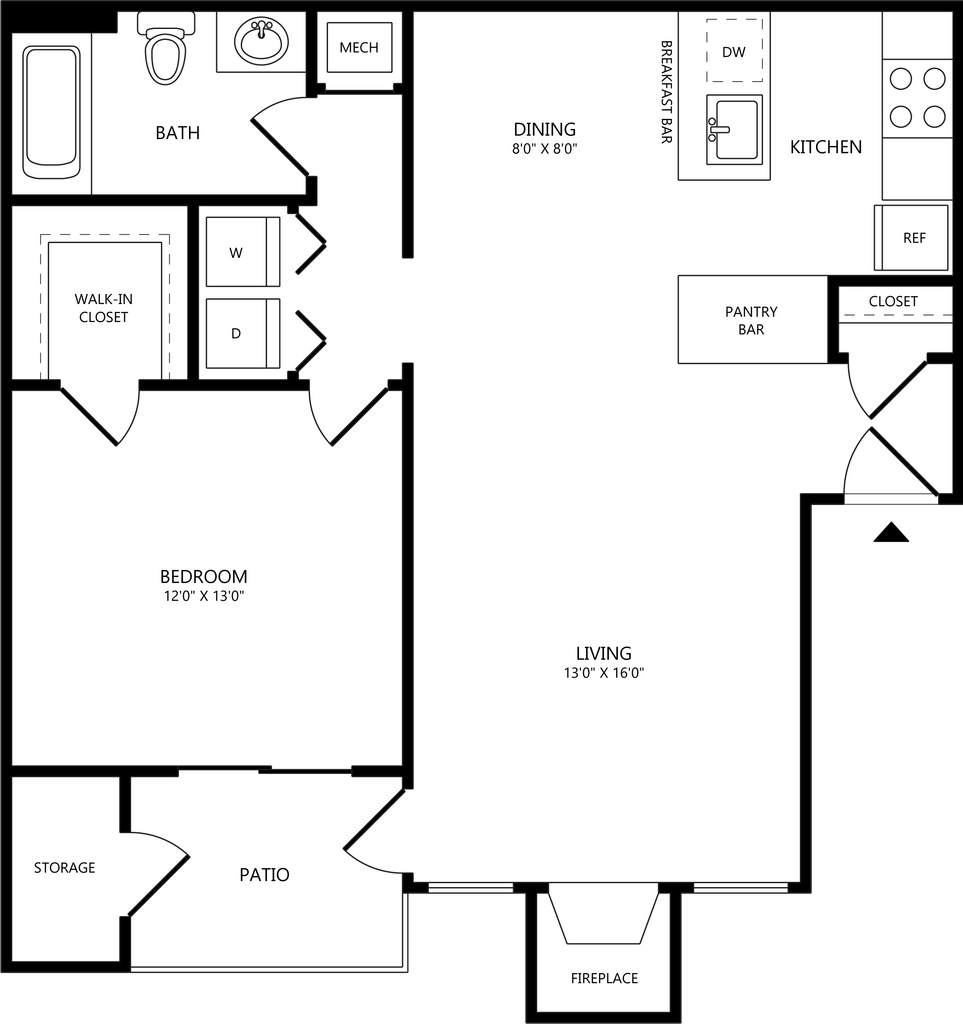 1 Bed, 1 Bath, 715 sq ftAvailable NowModel Gallery