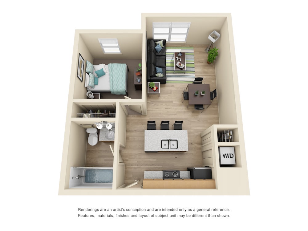 1 Bed, 1 Bath, 568 sq ftAvailable August 20, 2026Model Gallery