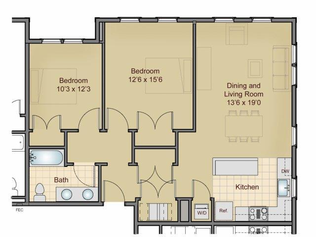 2 Bedroom 1 Bathroom - Floorplan 1 Apartment Unit: 1-201BApartment Model: 2 Bedroom 1 Bathroom$2,7952 Bedroom, 1 Bath, 972 sq ftAvailable Now2 Bedroom 1 Bathroom