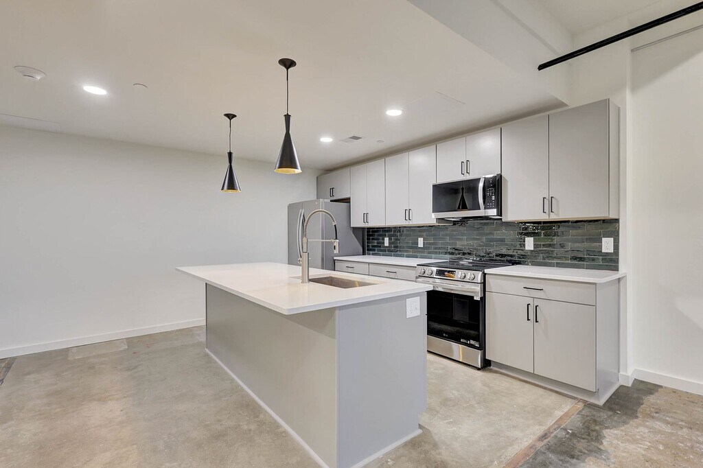 This beautiful industrial style unit features exposed brick, lofted ceilings, quartz countertops and stainless-steel appliances! The units are spacious and bright and showcase a beautiful barn door separating your living and sleeping areas and plenty of storage. This property is just a few blocks away from Chattanooga's historic Southside neighborhood with tons of restaurants, shops, bars and so much more! Enjoy the property's roof-top deck with 360-degree views of Chattanooga and common entertainment areas on each floor for gatherings with friends or neighbors! There is also plenty of greenspace, on-site parking and a bocce ball court.