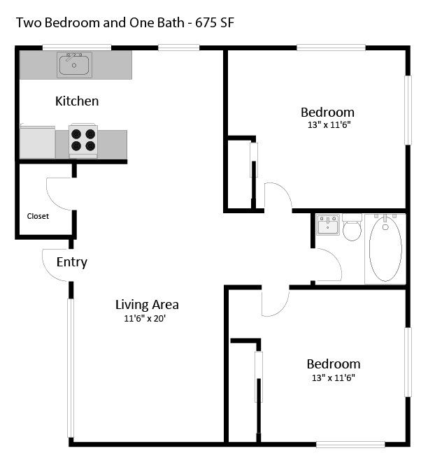 2 Beds, 1 Bath, 675 sq ftPlus FeesAvailable NowAvailability Details