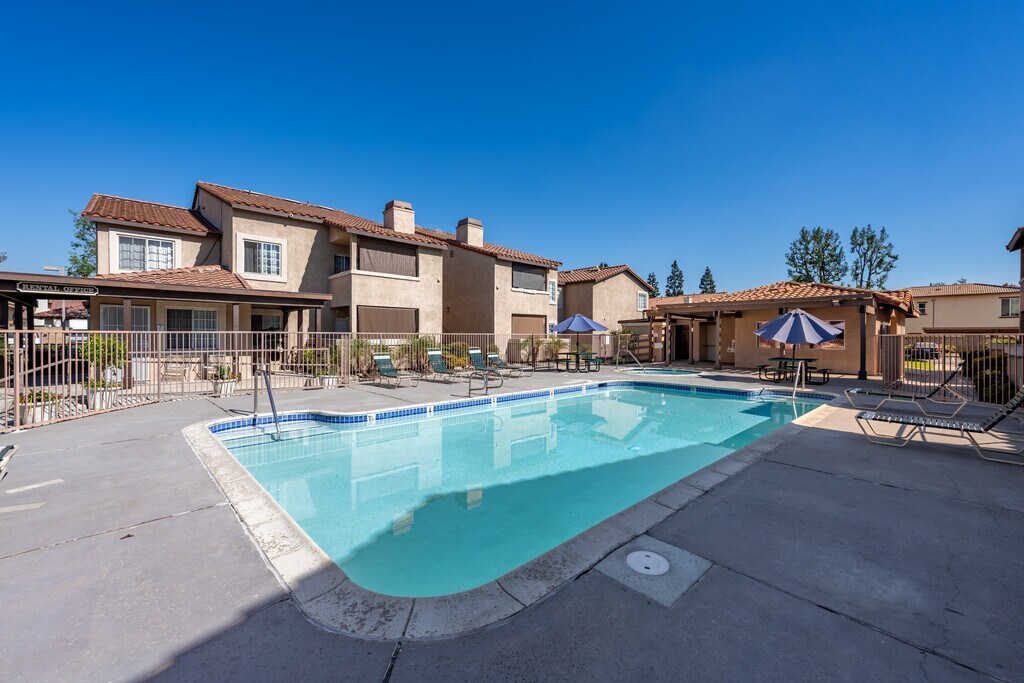Burton Place is a gated community located conveniently close to the 60 Freeway in Ontario, California. Our apartment homes feature central AC/Heat, gas fireplace, laundry hookups, walk-in closet and oversized tubs in our master bathrooms. Enjoy the outdoors at our pool and spa, on our nicely landscaped grounds or in your private patio or balcony. Select units have small yards. We are pet friendly (please contact the leasing office for pet restrictions).