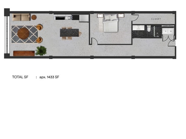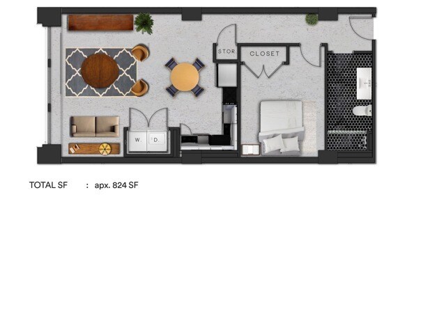 A9 - Floorplan 1 Apartment Unit: 01-223Apartment Model: A9$2,0001 Bedroom, 1 Bath, 824 sq ftAvailable NowFloorplan A1