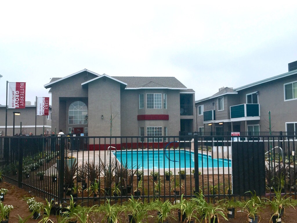 Butterfly Grove is where quality meets affordability. Our community is ideally located across from Fashion Fair Mall, less than .5 miles from hwy 41 and less than 2 miles from Fresno State University. We are close to diverse shopping, dining and transportation access. Easy walking distance to FAX transportation. Butterfly Grove offers 2 dazzling pools, sport courts* and Free WiFi* for all residents, perfect for those who appreciate today’s technology. If the convenience of our location doesn’t convince you that this is your new home, our renovated apartment homes will create a sense of serene comfort that welcomes you home every day. Our apartment homes offer hardwood textured style floors, energy efficient lighting and appliances as well as stylish paint and a kitchen backsplash. Our attractive amenities and upgraded units of 1,2, & 3 bedroom apartment homes are only some of the highlights you will come to admire at Butterfly Grove. Under the Butterfly Investment Brand, We take pride in managing and maintaining our carefully selected portfolio to the highest standards, with affordability in mind. We bring extra value to our properties and introduce special amenities to our communities such as a soccer field, free Wi-Fi, playgrounds and more.