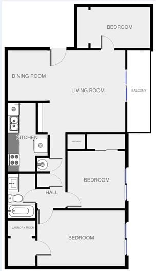 Apartment Model: 3 Bedroom3 Bedroom, 1 Bath, 1015 sq ftUnavailable![]()