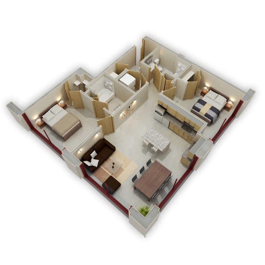One Bedroom D - Floorplan 1 Apartment Unit: 208Apartment Model: One Bedroom D$1,4101 Bedroom, 1 Bath, 664 sq ftAvailable March 1, 20262 Bedrooms