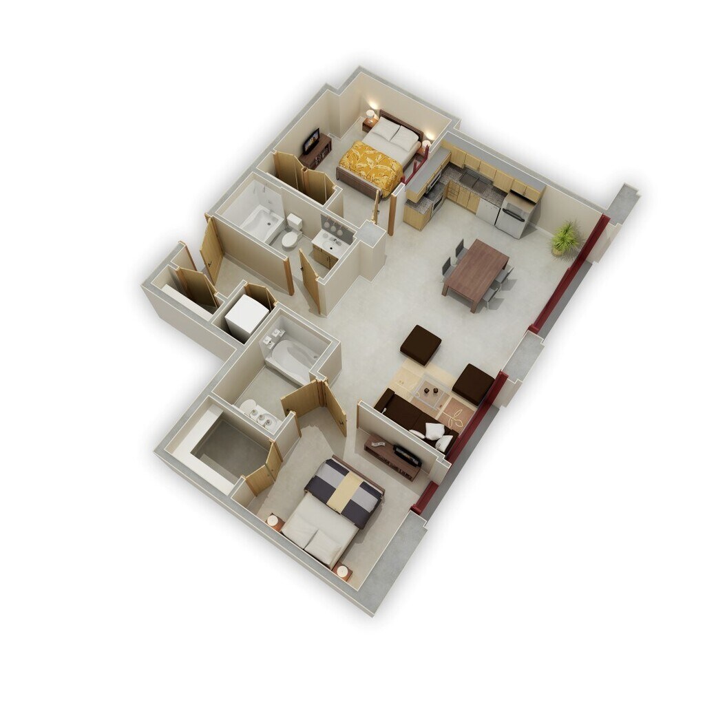 One Bedroom C - Floorplan 1 Apartment Unit: 109Apartment Model: One Bedroom C$1,4221 Bedroom, 1 Bath, 731 sq ftAvailable March 1, 20262 Bedrooms