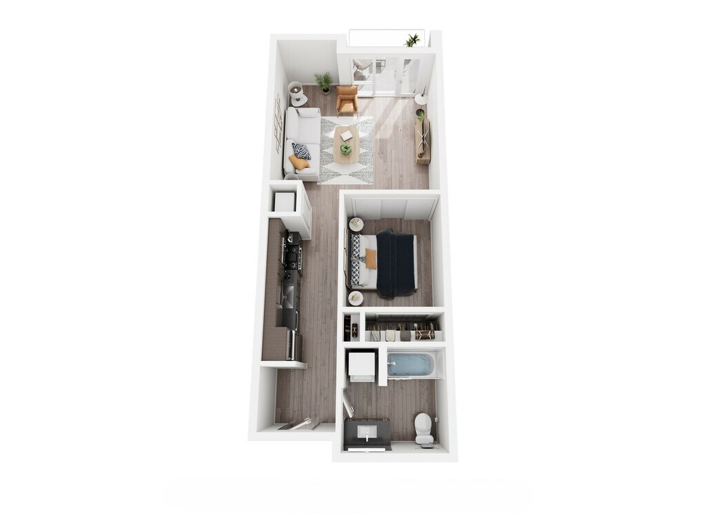 Studio - E - Floorplan 1 Apartment Unit: 1017Apartment Model: Studio - E$1,690Studio, 1 Bath, 483 sq ftAvailable Now![]()