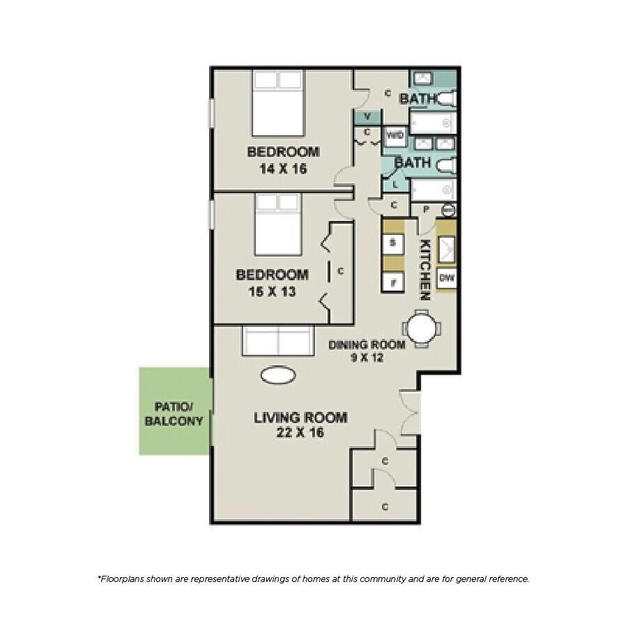 1 Bed, 2 Baths, 980 sq ftAvailable NowLargest 1 BedroomThis is the largest 1 Bedroom at this PropertyModel Gallery