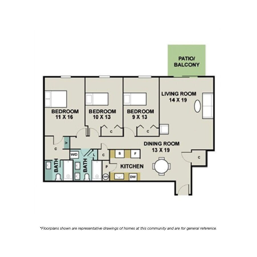Apartment Model: ChesterfieldFrom $9101 Bedroom, 1 Bath, 852 sq ftAvailable Now![]()