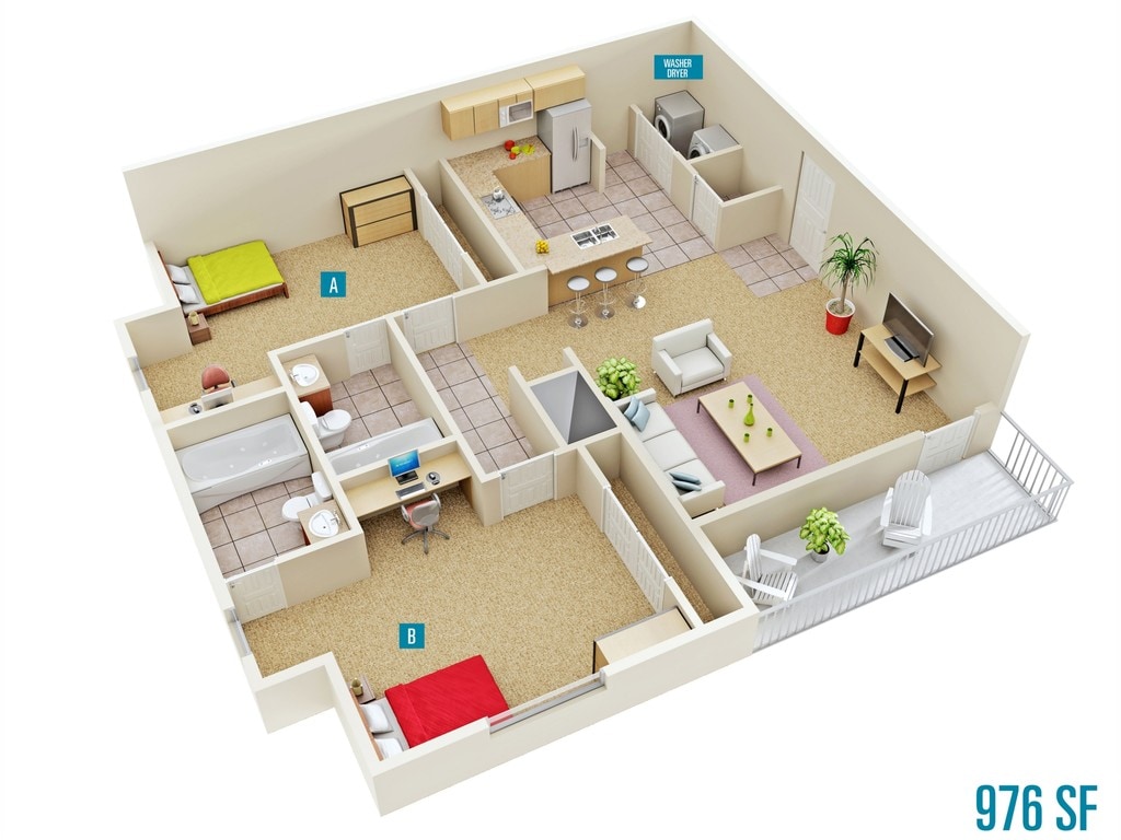 2 Beds, 2 Baths, 976 sq ftModel Gallery