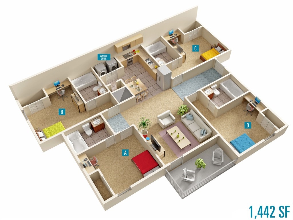 Apartment Model: D1 Furnished4 Bedroom, 4 Bath, 1442 sq ftUnavailable![]()