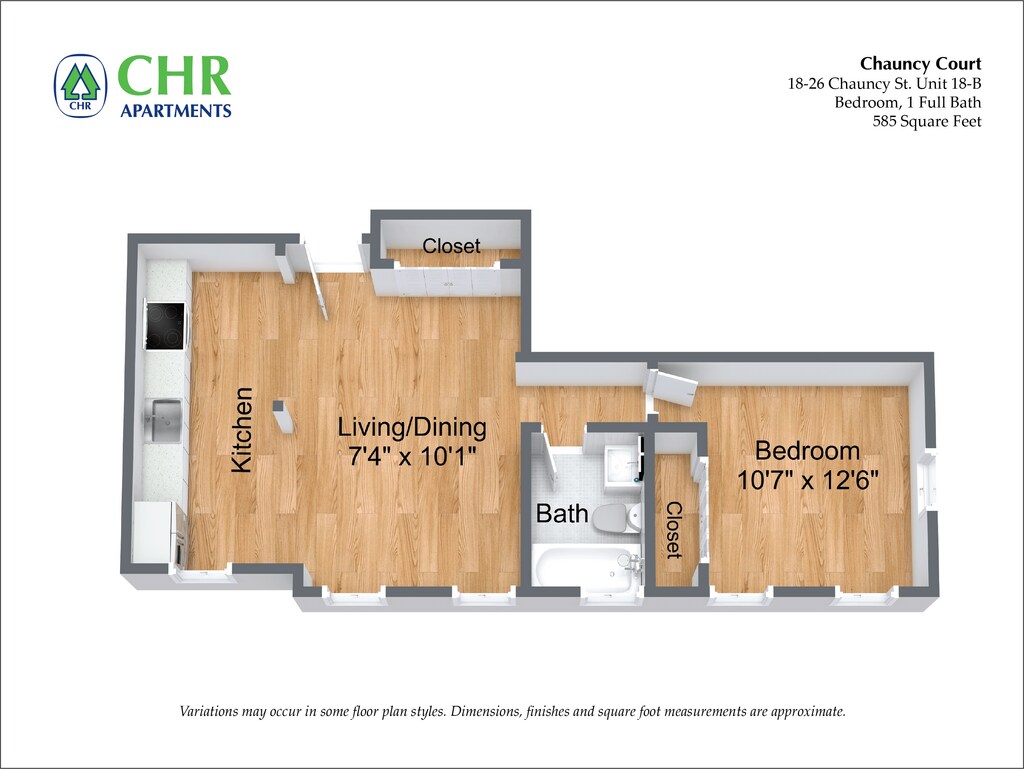 Chauncy Court - 1 Bedroom (Newly Renovated) - Floorplan 10 Apartment Unit: 18-BApartment Model: Chauncy Court - 1 Bedroom (Newly Renovated)$2,8851 Bedroom, 1 Bath, 585 sq ftAvailable Now![]()
