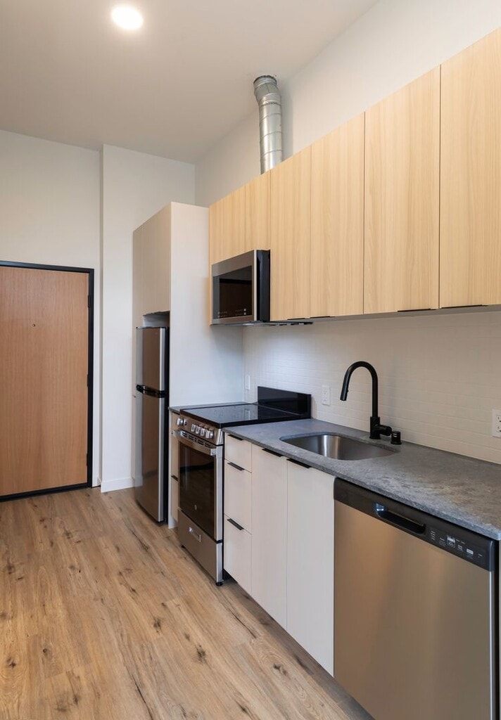 ?Location: Chronicle, 4417 Wallingford Ave N, Seattle, WA 98103 Unit Key Features: ?Modern Kitchen: Sleek cabinetry, stylish backsplash, durable countertops, and a matte black faucet. Includes a microwave, dishwasher, four-burner stove, oven, and refrigerator. ?Washer/Dryer: In-suite laundry for ultimate convenience. ?European Windows & Unique Blinds: Dual-opening windows with versatile blinds for privacy and light control. ?Stylish Finishes: Hardwood-style LVP flooring and neutral-toned cabinetry for a warm, modern feel. ?Built-In Storage: Ample space for clothes and personal items. ?Climate Control: A/C port and electric heating for year-round comfort. Tenant Experience & Community Amenities: ?Online Tenant Portal: Easily access documents, make rent payments, and submit 24/7 maintenance requests. ?On-Site Maintenance & Support: Prompt service with a 24/7 emergency line and part-time on-site management ?Monday through Friday. ?Elevator Access: Smooth, convenient access throughout the building. ?Package Lockers: Secure storage for convenient deliveries. ?Lobby Carts: Transport groceries, packages, and more with ease. ?Bike Storage Room: Secure, easy bike storage. ? Reservable Indoor Community Lounge & Kitchen: A welcoming space with a microwave, sink, and fridge—ideal for quick bites, socializing, and relaxing. ?Rooftop Lounge: Enjoy panoramic views of downtown and the Space Needle. ?Rooftop Fire Pit: Perfect for cozy evenings under the stars. ?Rooftop BBQ & Dining Area: Outdoor grilling and dining tables for al fresco meals. ?Gated Rooftop Dog Run: A special play area for your four-legged friends. Welcome to the height of urban living at Chronicle!