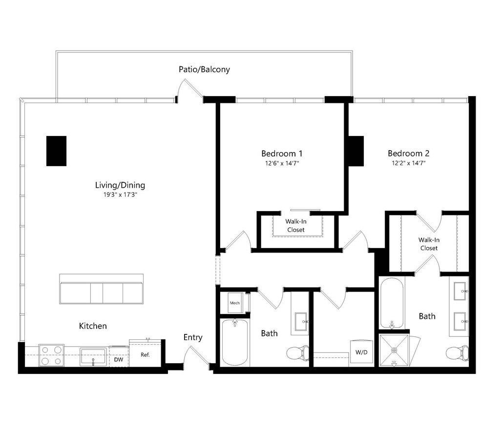 Studio, 1 Bath, 818 sq ftLargest StudioThis is the largest Studio at this PropertyModel Gallery