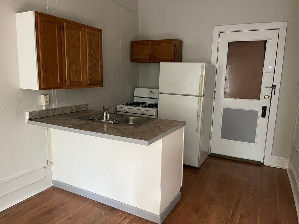 1 Bedroom that is located on a quiet dead-end street and just a short walk to the university. This is in a residential neighborhood with no traffic. The apartment has large rooms, high ceilings, newer appliances, hardwood floors, ceramic tile baths and a rear patio. There is off street parking & laundry at the premises. Heat, water & hot water are included in the rent.