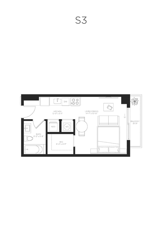 S3 - Floorplan 1 Apartment Unit: 3701Apartment Model: S3$2,350Studio, 1 Bath, 407 sq ftAvailable March 1, 2026Apartment Unit: 3801Apartment Model: S3$2,355Studio, 1 Bath, 407 sq ftAvailable March 1, 2026Apartment Unit: 3901Apartment Model: S3$2,360Studio, 1 Bath, 407 sq ftAvailable March 1, 2026Floorplan S4